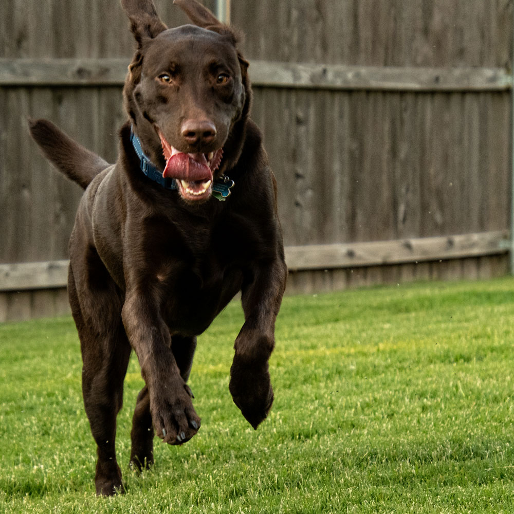 Our 3 year old American Cocker Spaniel, Lucy stands at 12 inches tall and weighs in at 18 pounds. Cousin Bruno is approximately 24 inches at the shoulders and tips the scales at 95 pounds. He is an 18 month old Chocolate Lab and Bruno is a stunning canine.
