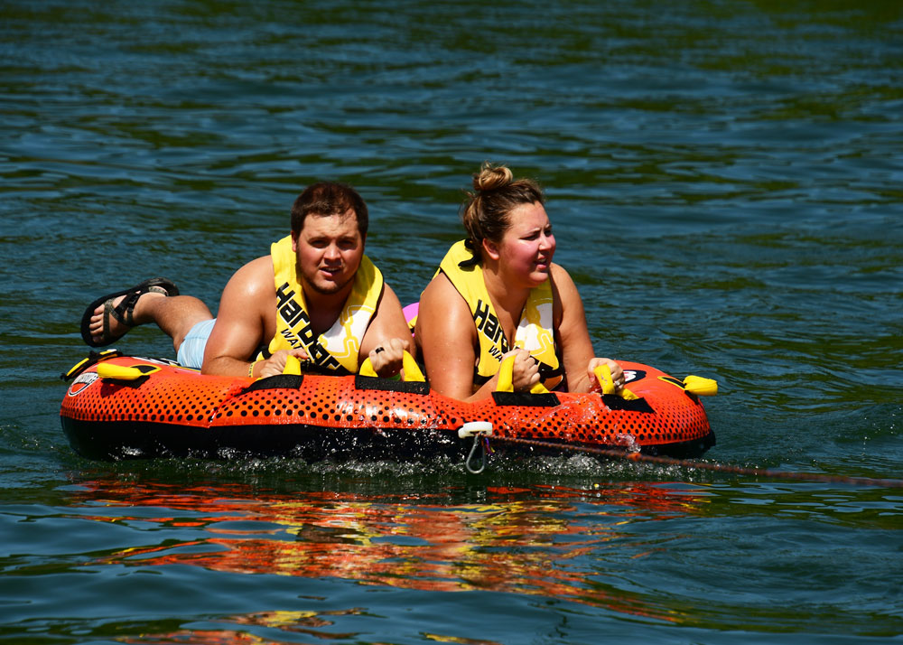 We almost always take one morning and rent a pontoon boat to go tubing. We also rent a couple of jet skis on a different day for those who are more adventurous. I am long past the age that a jet ski sounds like a good idea. Okay back to the pontoon boat and tube. I have always been the designated driver and my daughter becomes the family photographer for this event. Here are a few images from this year.