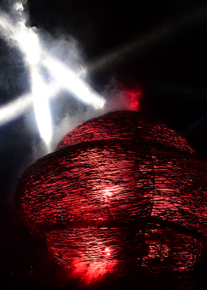 It is a very large sculpture and light show currently on display at our local museum. The event takes place after dark. There will probably be a more complete explanation in my post for Monday. What you are looking at probably represents a giant ember in a fire…at least that’s the way I see it.
