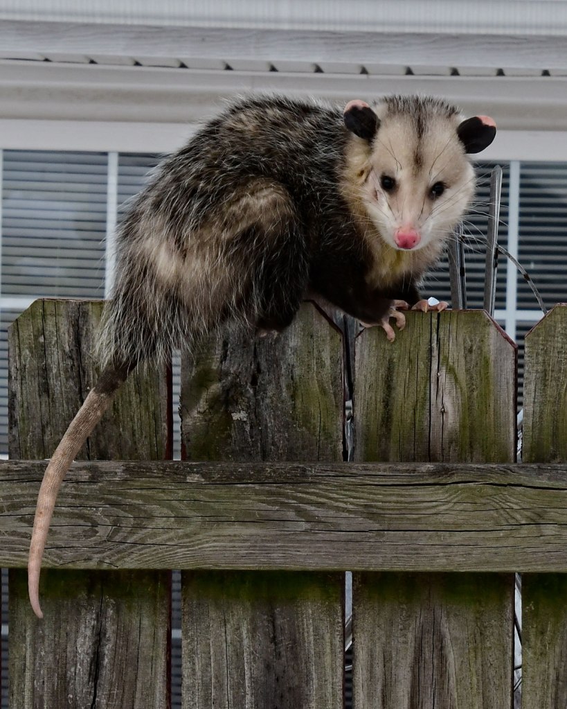 5. I’ve seen some possums in our neighborhood, usually at night, on the street. Not on a fence. I think he kind of liked you.