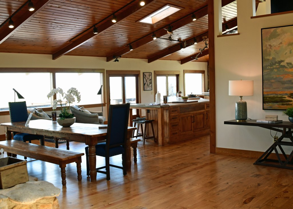The lodge is approximately 3200 square feet and contain a huge pantry, production room, and several bedrooms that I am sure staff occupies during taping of the shows. It is a very simple exterior but the interior is beautiful.