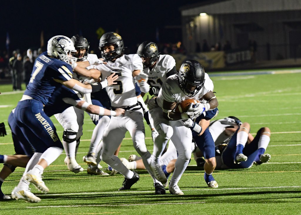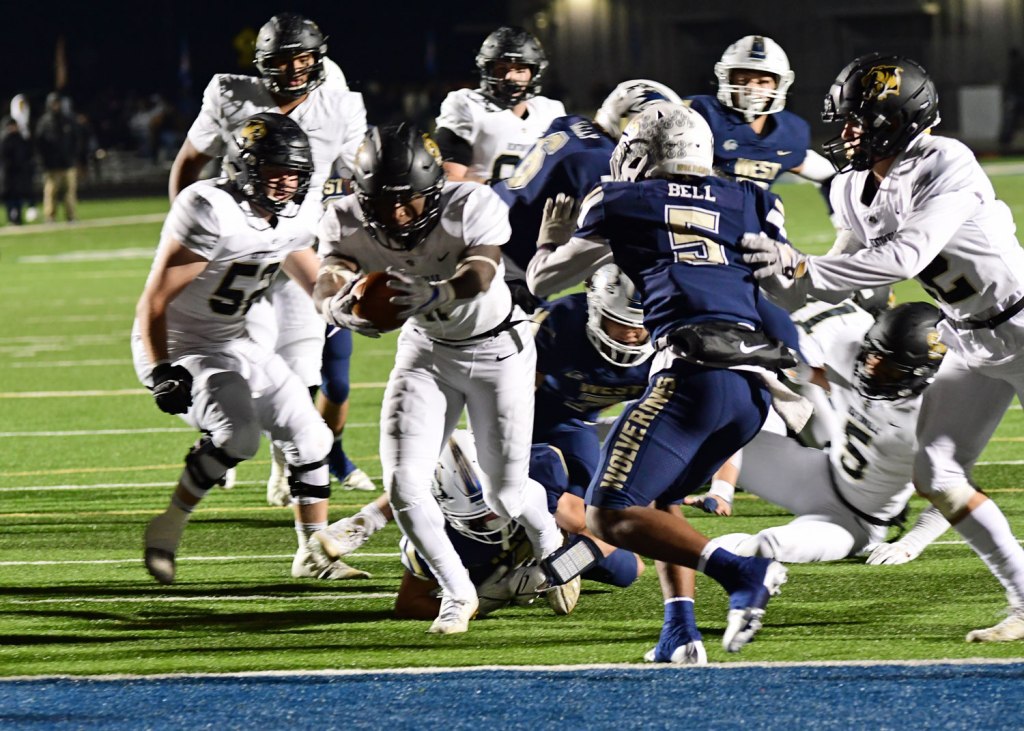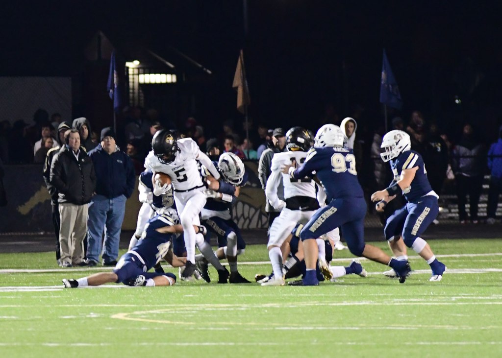 Friday night was the last regular season game for the two local high schools. It is a rivalry game and this year they were playing for the number two seed in the play-offs, which means that the winner will get a week off before playing again and the loser will probably have to play a road game. The team in white is the older high school while the team in blue is now about seven years old. The Wolverines have never beaten the Tigers and this year was no different. The old guard put the youngsters in their place by a score of 56-21.
