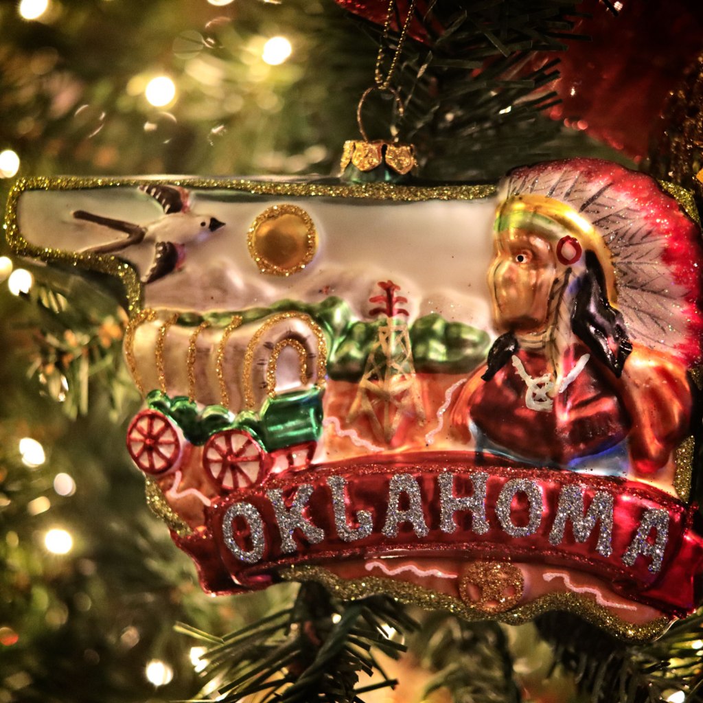 The main tree has two new ornaments this year. Since my wife’s birthday is early in December it is not unusual for her to receive Christmas themed gifts. This year our daughter got her two new glass ornaments. One is the state of Arkansas where my wife was born and we now reside. The other is the state of Oklahoma where I was born and raised.