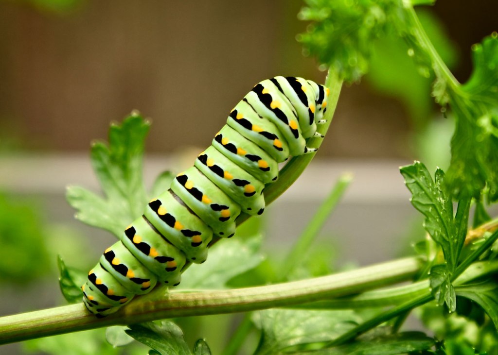 My wife and I have been growing a small garden this year and have truly enjoyed the taste of tomatoes fresh from the vine. There is nothing better than a BLT sandwich when the lettuce and tomatoes come fresh from the garden. I also built a raised planter on one side of the house for the splash of color from zenias and a few herbs. The other day my wife spotted several caterpillars on the parsley.