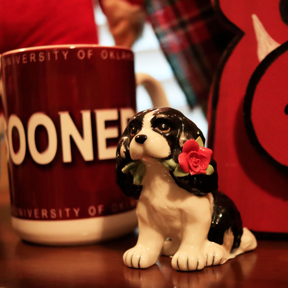 At the base of the tree you have seen Santa, the Sooners coffee mug and 1994 Razorback carton of Coca Cola. A new addition this year is a ceramic pup that looks like our cocker spaniel, Lucy. Let’s see, my wife does three trees, I still can decorate the exterior with lights, we read the Christmas story from Scripture, and we love spending time with the family. I guess you could say, “We do Christmas Like We Mean It”.