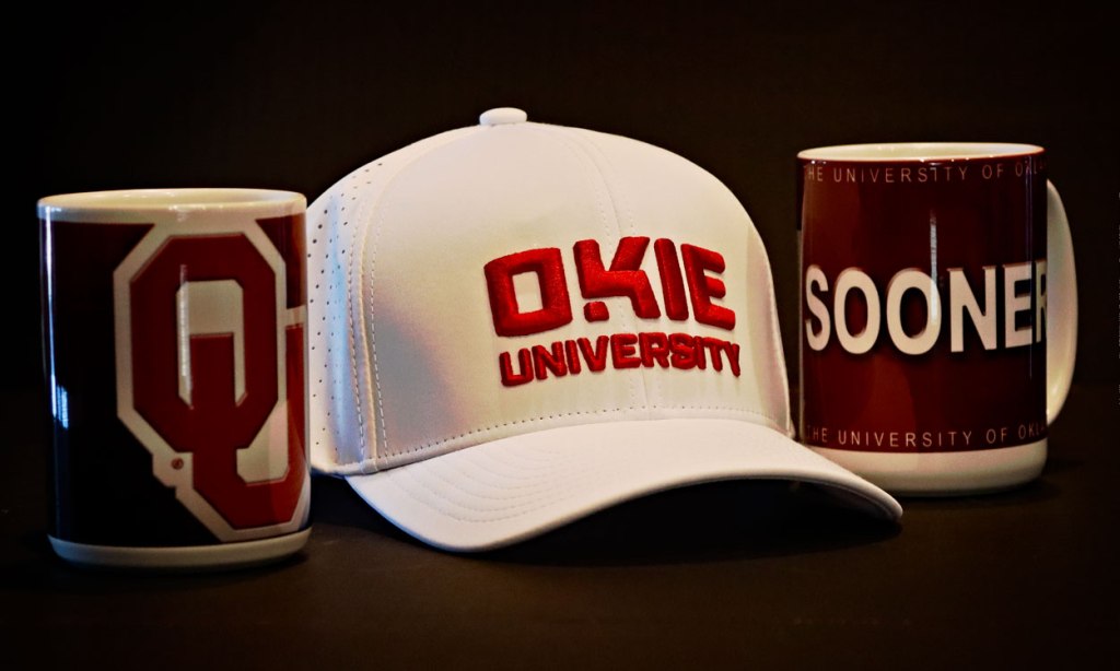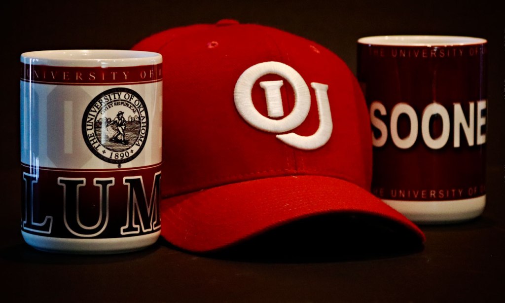 The University of Oklahoma is simply known as OU by everyone in the state. The logo on the cup above is the current version of OU found on most merchandise. However, the logo on the cap below comes from the early days of the university and I still think it’s a very good look.