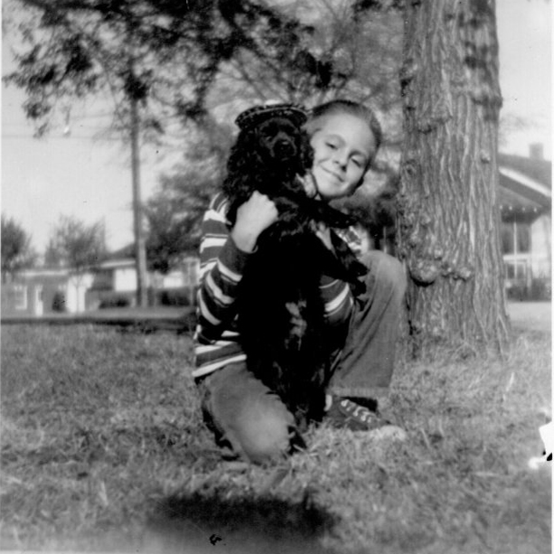 The very first dog of my very own was the black cocker spaniel we named Muggs. I am about six years old in this photo and Muggs was a family member all the way through my high school graduation.